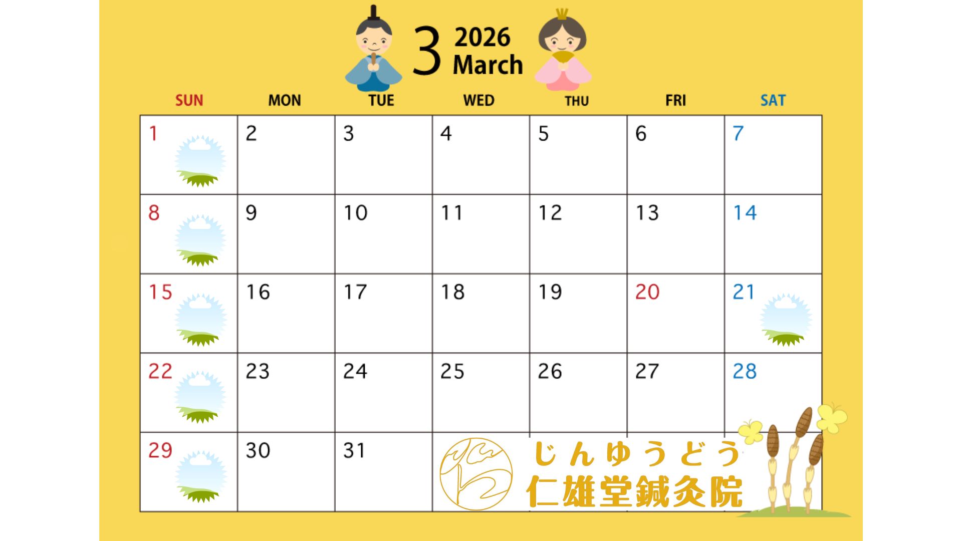 - 治療院でのクラスター発生を避けるため託児の受付を休止しており、受付から施術まで院長が単身で対応させていただいております。