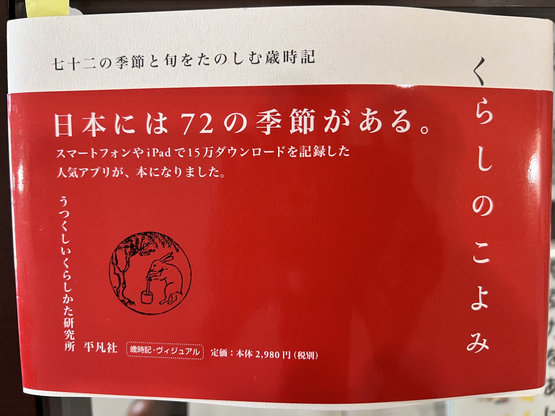待合室に置いてある【くらしのこよみ】という本には72節気に分けられた季節と旬を楽しめる暦のことが書かれています。